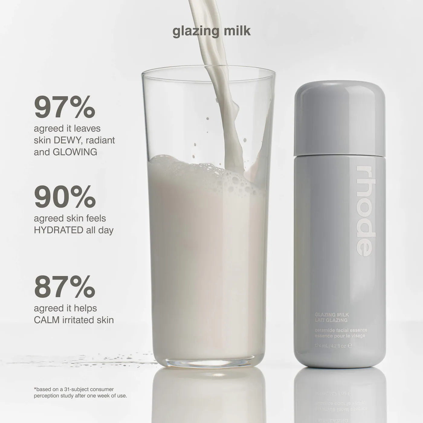 De qué se trata: Un conjunto de tres productos nutritivos esenciales de Rhode para dar brillo a tu piel y tus labios: Glazing Milk, Peptide Lip Tint y Peptide Lip Treatment.